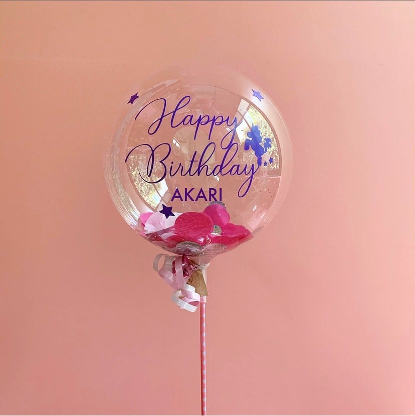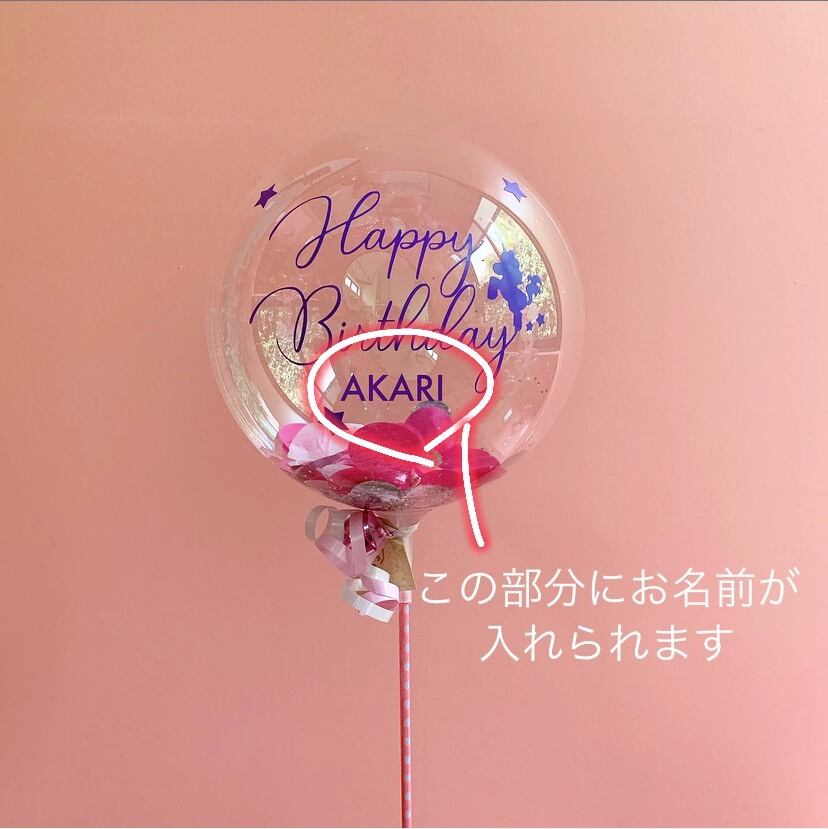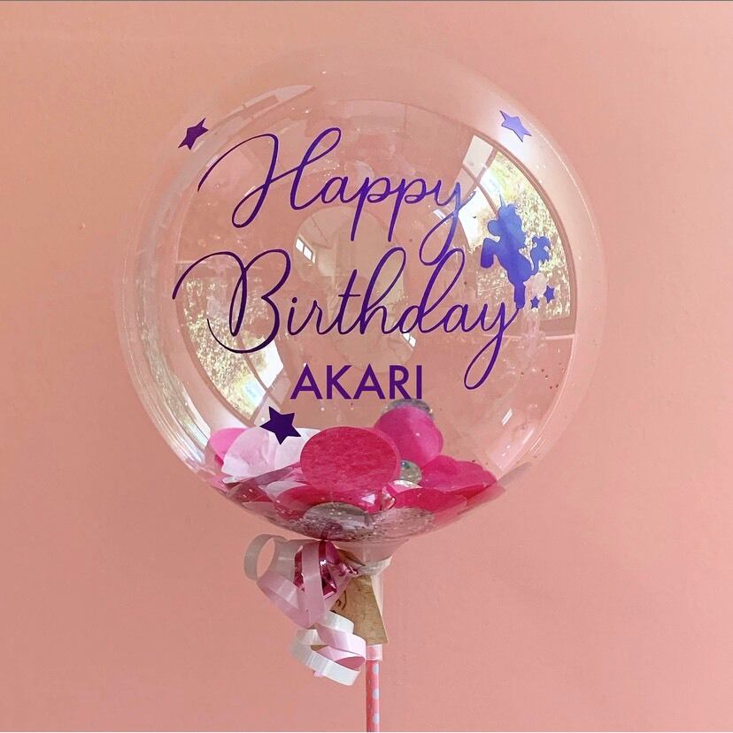 クリアバルーンの中は、ピンクとホログラムコンフェッティ+キラキラなグリッター入りです!