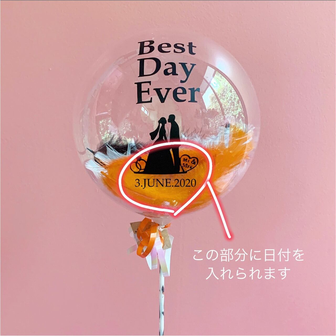 ①2枚目写真の、白〇部分に日付を入れることができます。(日付入れ無しでも承れます)