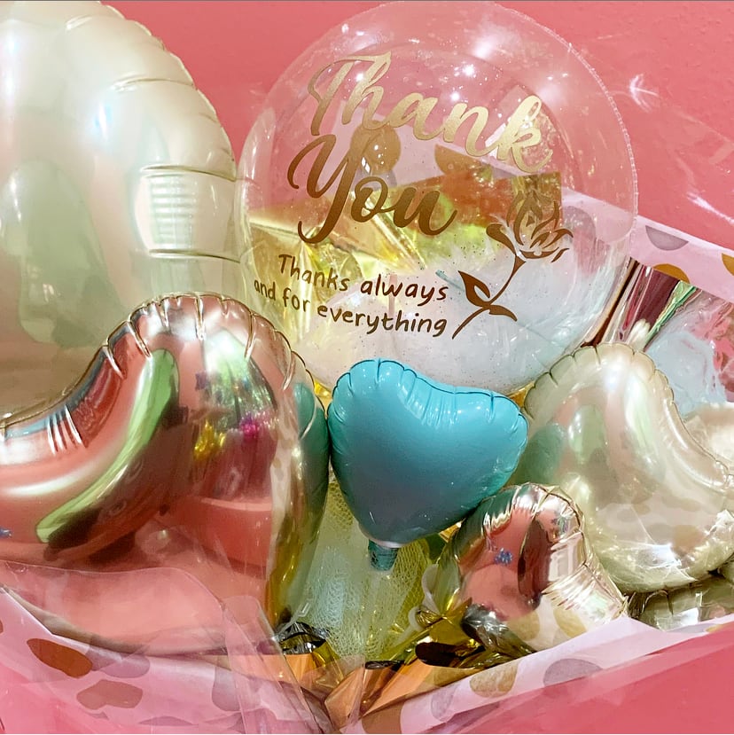 クリアバルーンにはThank You +薔薇のイラストと、【thanks always. and for everything.(訳)いつも色々とありがとう】のメッセージが入っております。