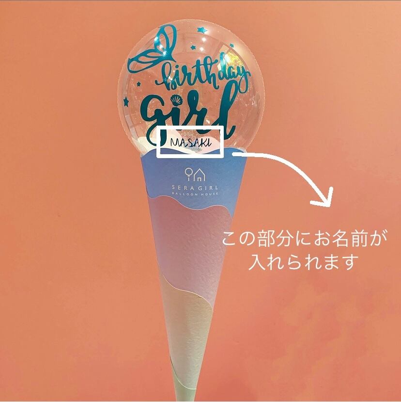 アイスクリームのようなコーン付きデザインがキュートなSeragirlオリジナルバルーン。