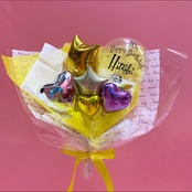 黄色ををメインカラーにポップな雰囲気でお作りしたバースデーブーケです!