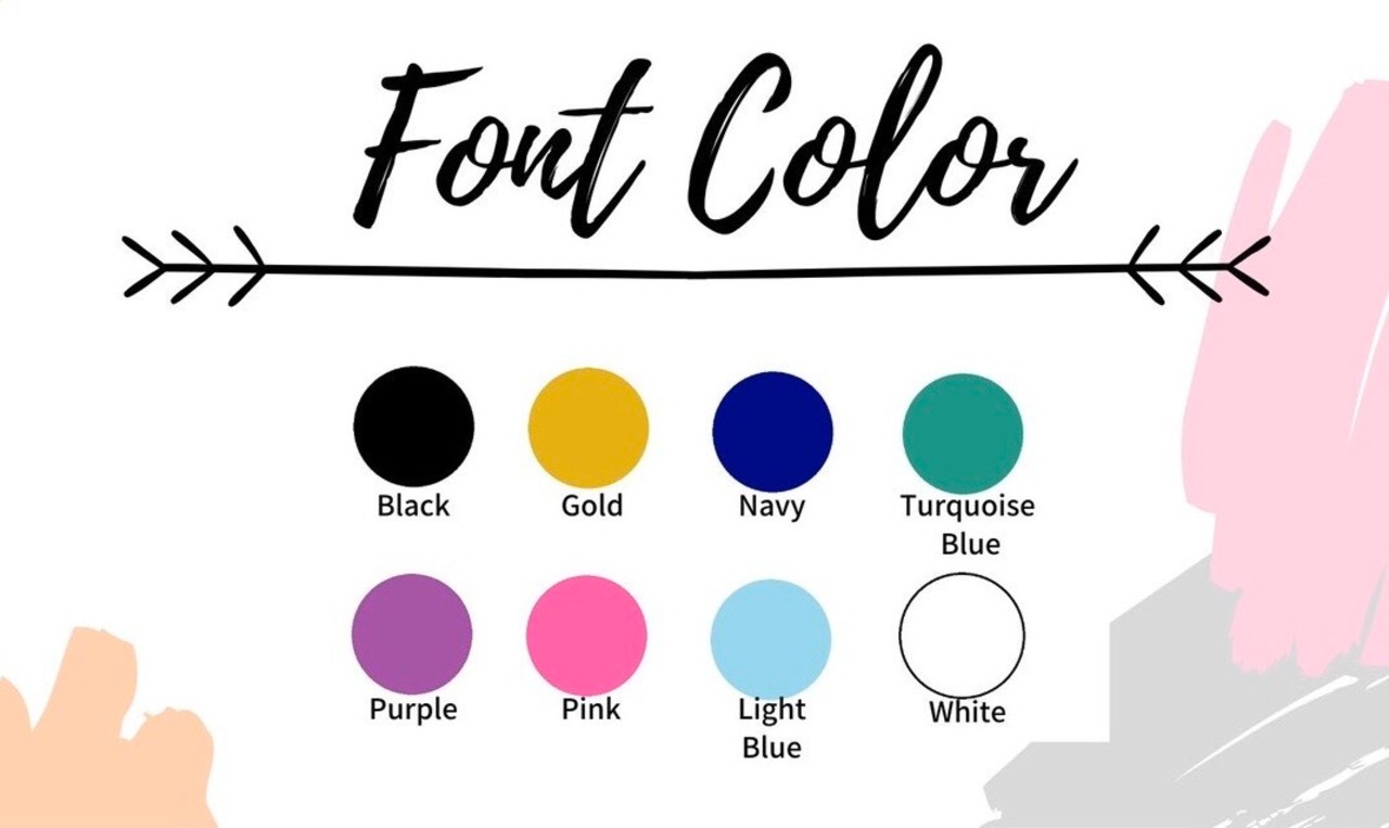 ①文字色変更を希望の場合は、フォントカラー表(写真5枚目参照)からお好きな色を備考欄に記入ください。