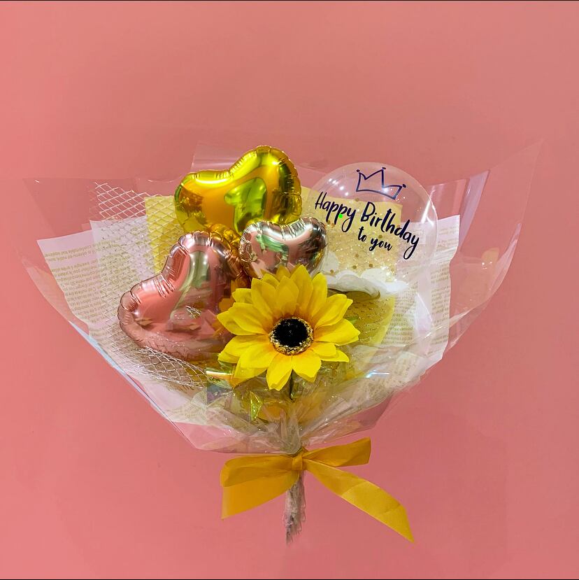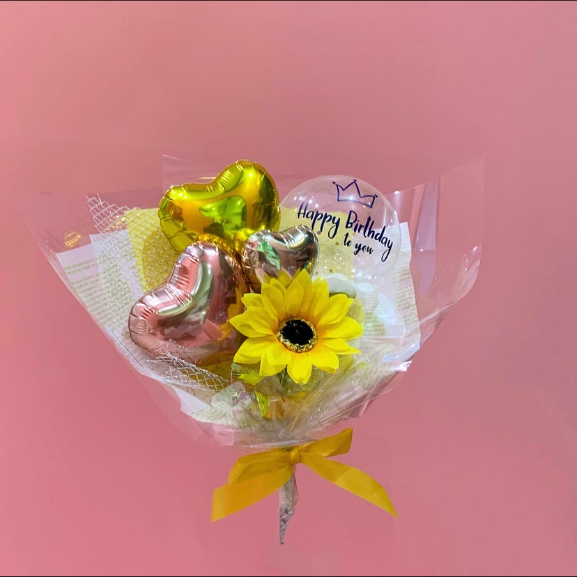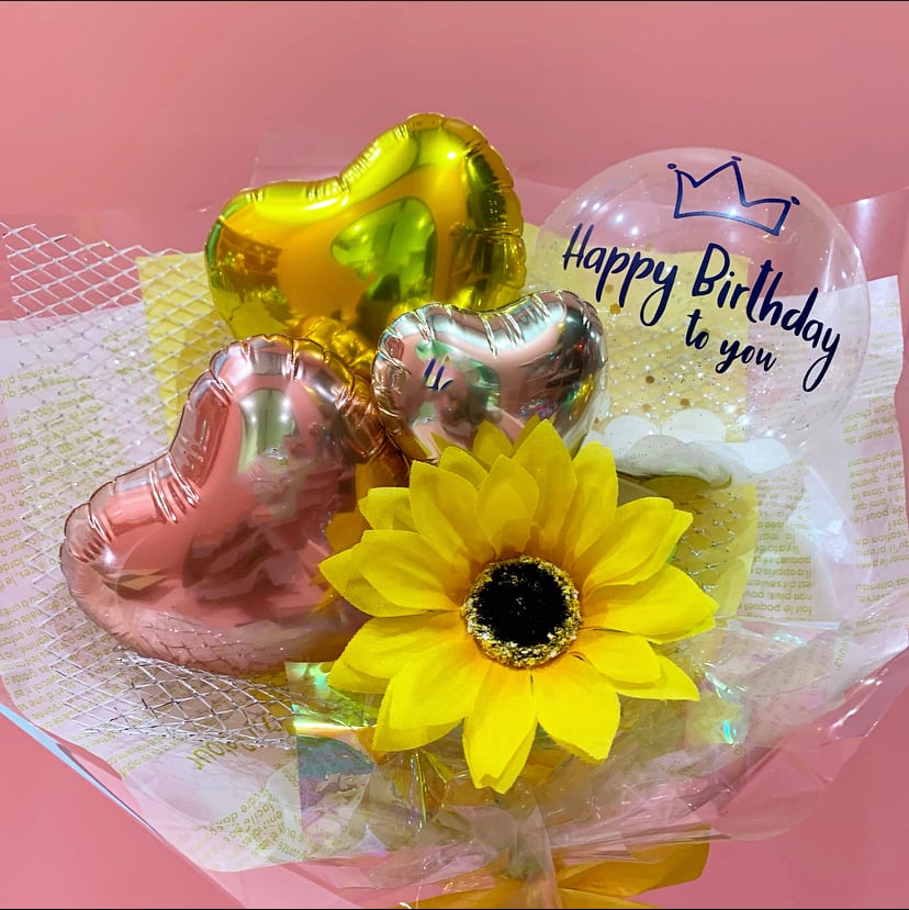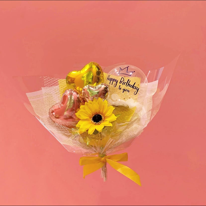 夏を代表する花、ひまわりをメインにしたバースデーブーケ。