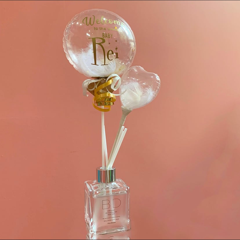 アロマオイルのボトルに挿したスティックバルーンから自然に香りが広がっていく『バルーンディフューザー』
