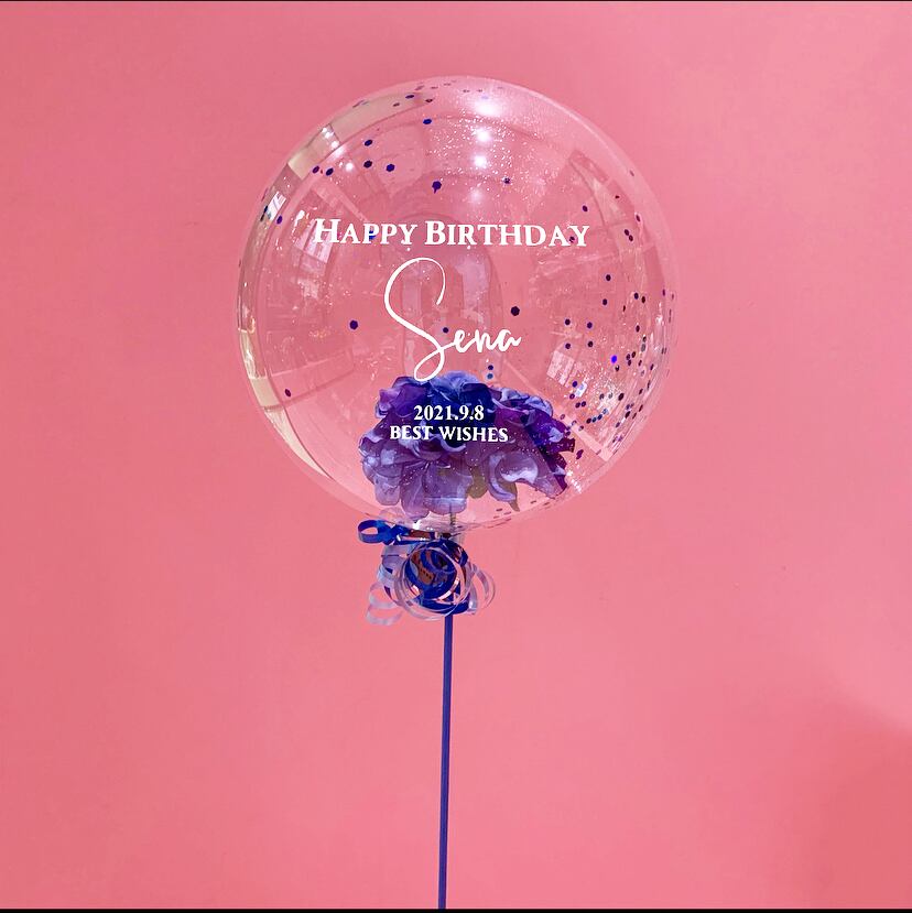 誕生石カラーをイメージしたお花が入ったスティックバルーン!