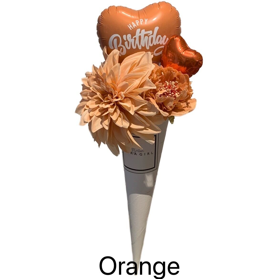 アイスクリームコーンの様な形がかわいい♡バースデーバルーンブーケ。